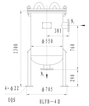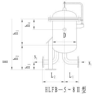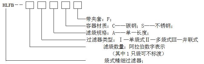 示例:HLFB-4ⅡS表示內置4只濾袋,殼體不銹鋼材質的袋式精細過濾器。