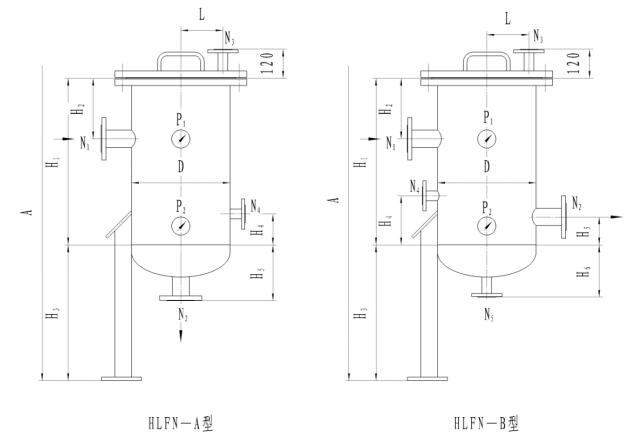 HLFN型精細過濾器典型結構及尺寸